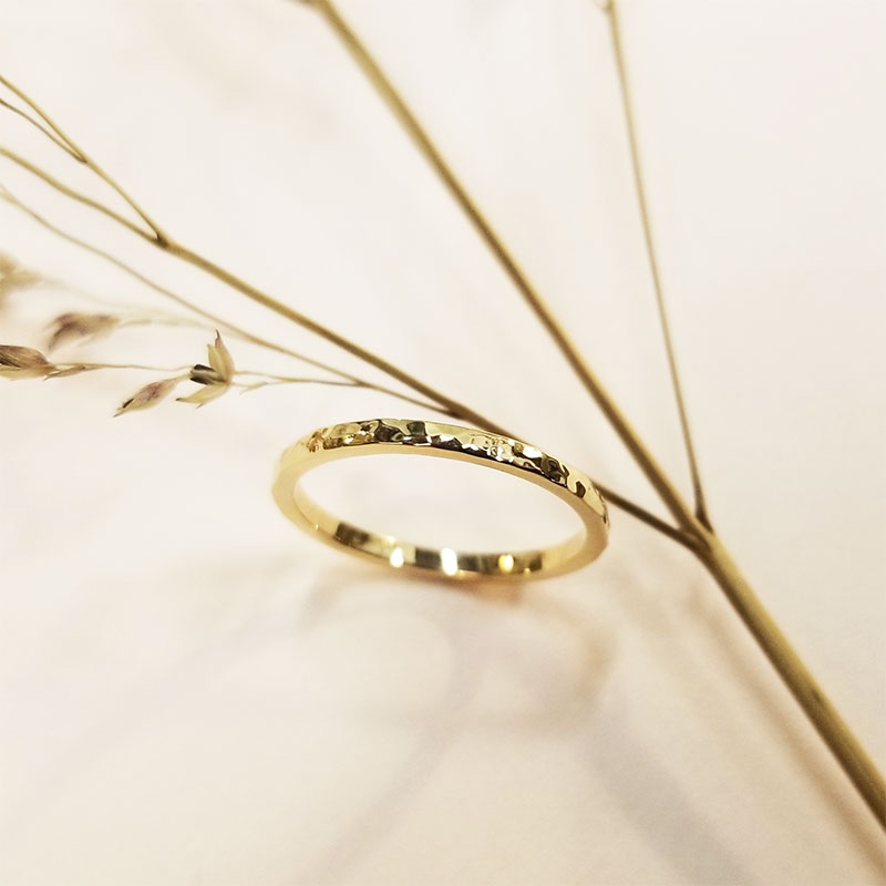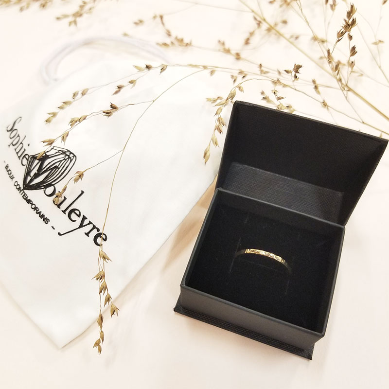 Grâce à son effet de surface qui renvoie la lumière, cet anneau fin, de forme ruban aura un éclat tout particulier. Un modèle élégant et intemporel qui peut se porter comme alliance ou simple anneau.